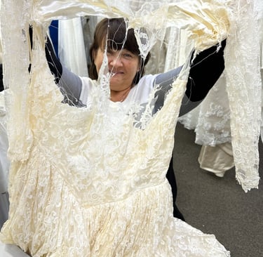 Elena especially loves working with vintage and antique gowns. There's something extra special about bringing life back into a gown so that it can continue bringing beauty, joy, and love into the world.